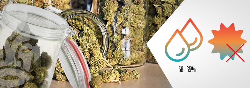 Het is van levensbelang de pot en de inhoud op een relatieve luchtvochtigheid van 60-65% te houden. Zo blijft de kwaliteit gegarandeerd goed. Producten als Boveda of Integra humidity packs zijn speciaal ontwikkeld voor het opslaan van cannabis. Ze behouden automatisch de luchtvochtigheid in een cannabisvriendelijke omgeving. Dit is de niet-te-droog, niet-te-nat, klaar voor gebruik vochtigheid voor de fervente roker.